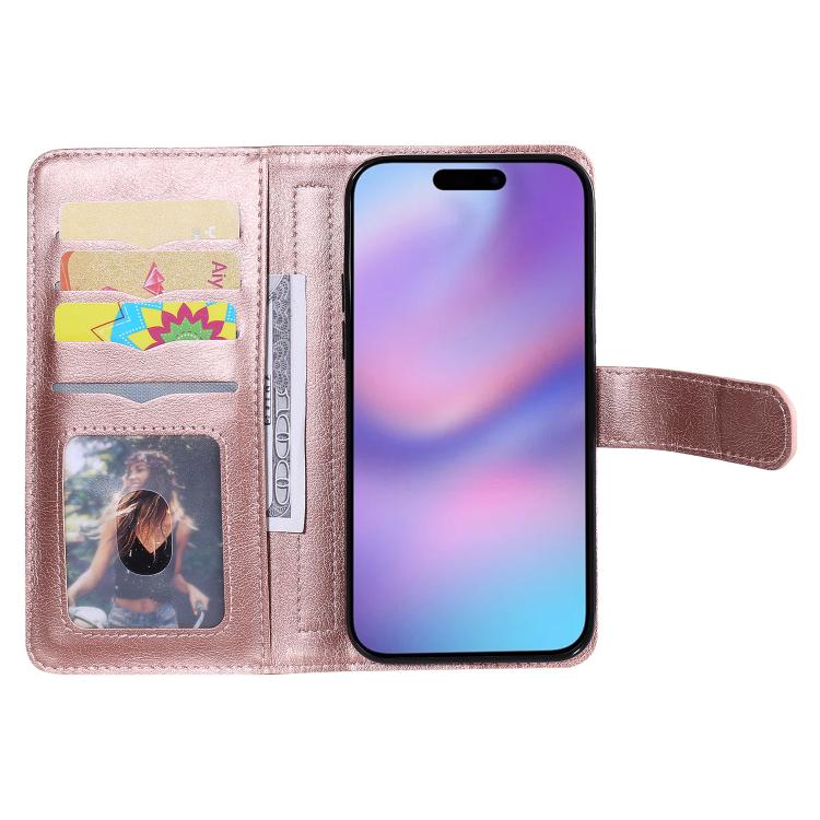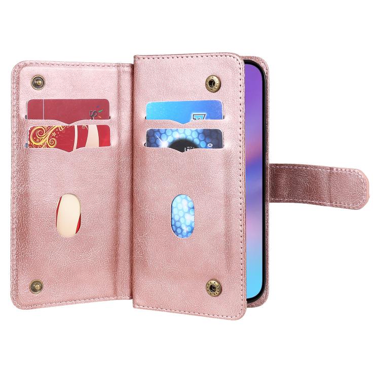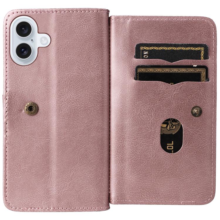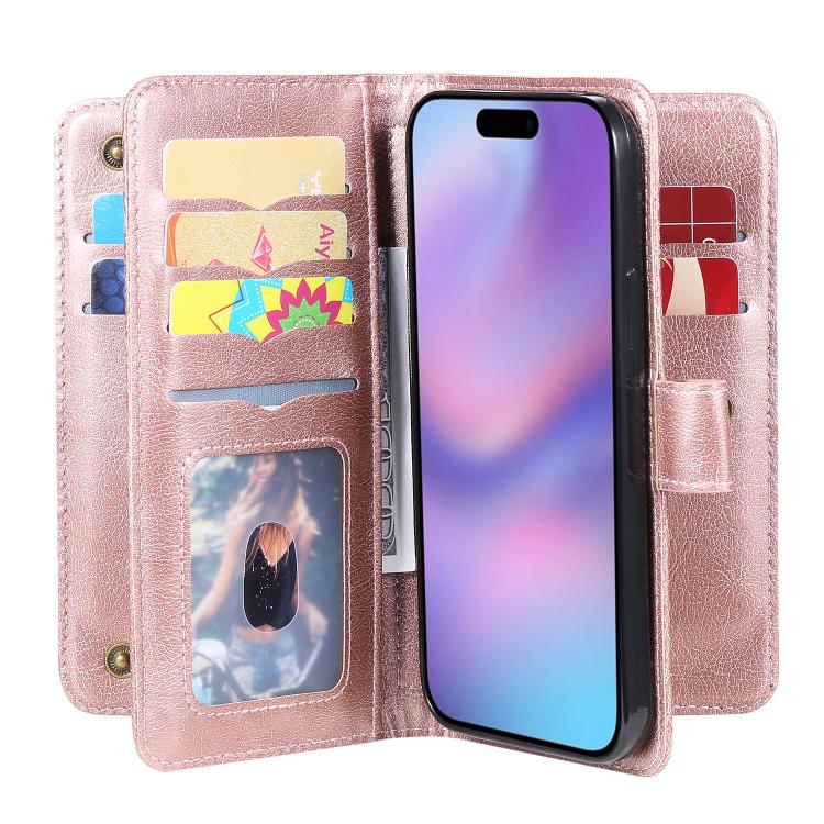 Funda de cuero multifunción tipo billetera para iPhone 17 con 10 ranuras para tarjetas (oro rosa)