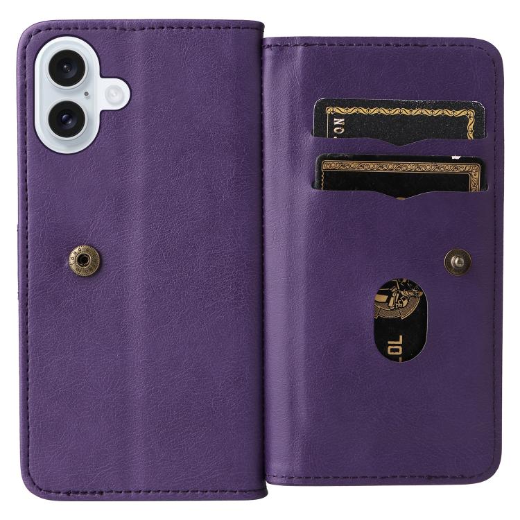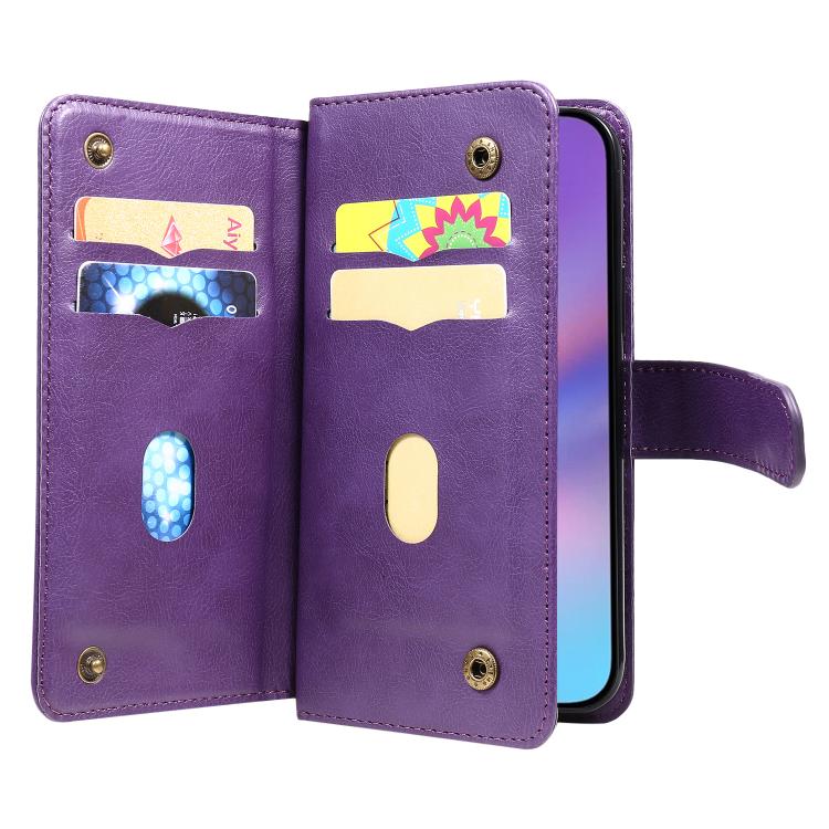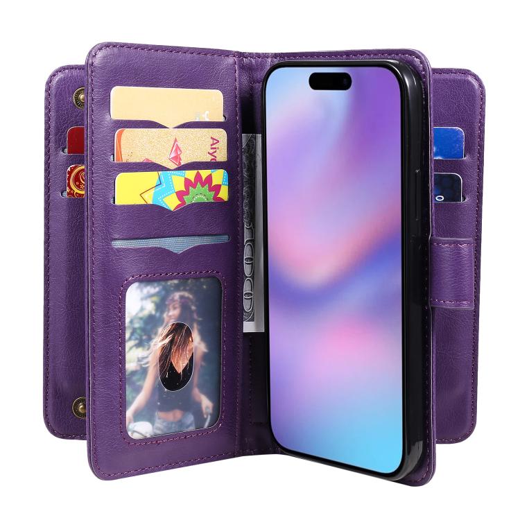 Funda de cuero multifunción tipo billetera para iPhone 17 con 10 ranuras para tarjetas (violeta)