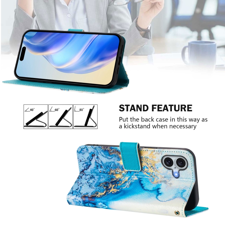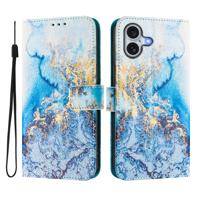 Funda de Cuero para iPhone 16 Patrón de Dibujo Artístico (Mármol Oceánico)