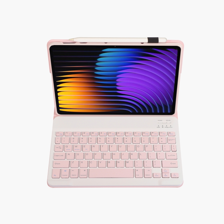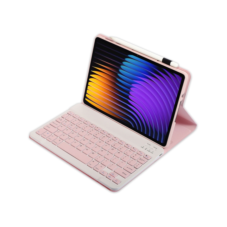 Funda de Cuero para Tableta Xiaomi Pad 7 y 7 Pro con Teclado Bluetooth Desmontable (Rosa y Blanco)