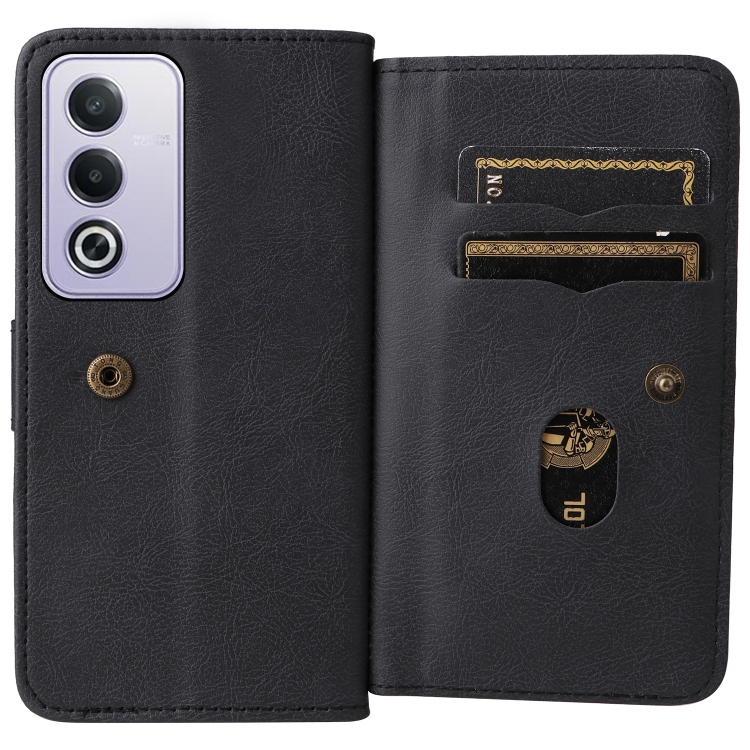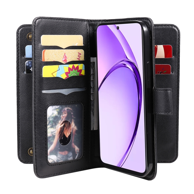 Funda de Cuero para Teléfono con 10 Ranuras para Tarjetas y Billetera Multifunción para Oppo A3 Pro 5G/A3 Pro India (Negra)