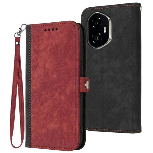 Funda de Cuero para Honor 300 con Correa de Mano y Hebilla Lateral Doble Plegable (Rojo)