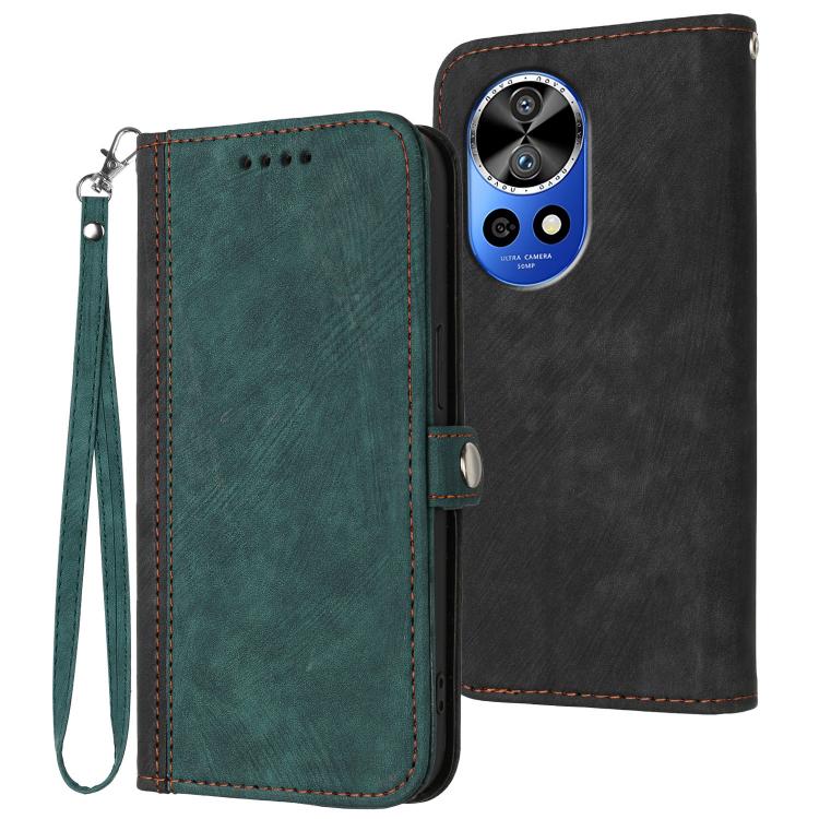 Funda de Cuero para Huawei Nova 12 Pro y Nova 12 Ultra con Correa y Hebilla Doble Plegable (Verde Oscuro)