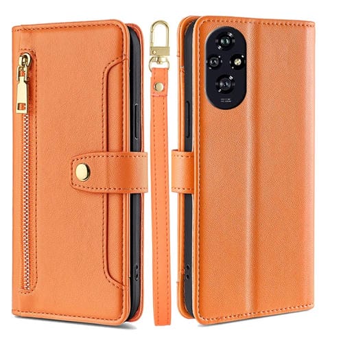 Funda de Cuero con Cremallera y Textura de Oveja para Honor 200 5G (Naranja)