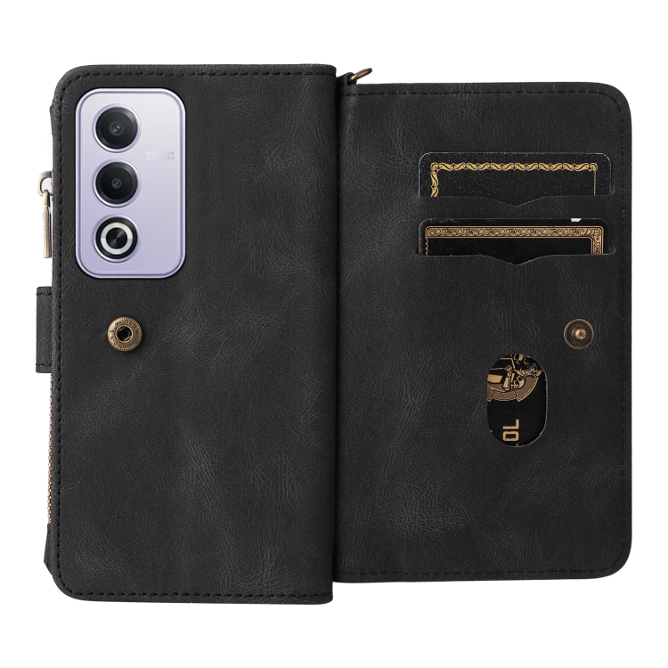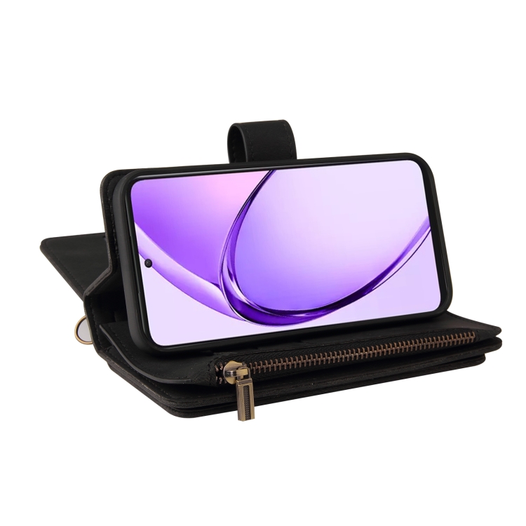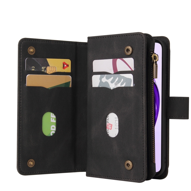 Funda de Cuero para Teléfono con Cremallera y Ranuras para Múltiples Tarjetas para Oppo A3 Pro 5G/A3 Pro India (Negro)