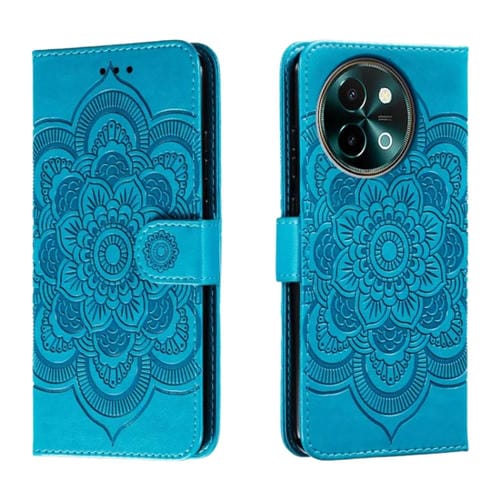 Funda de Cuero para Teléfono con Estampado de Mandala y Sol para Vivo Y38 (Azul)