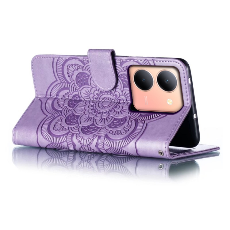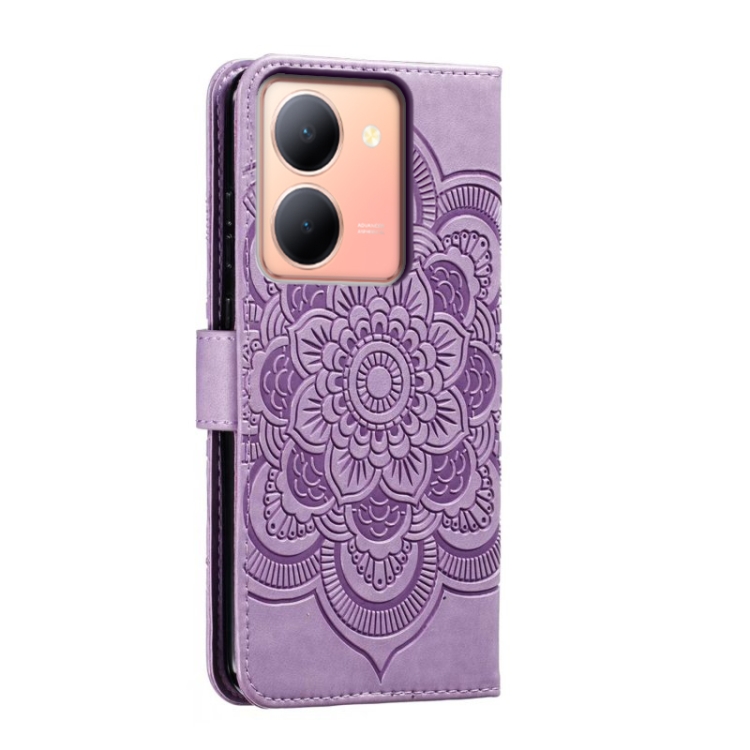Funda de Cuero para Teléfono con Estampado de Mandala y Sol para Vivo Y78 (Morado)