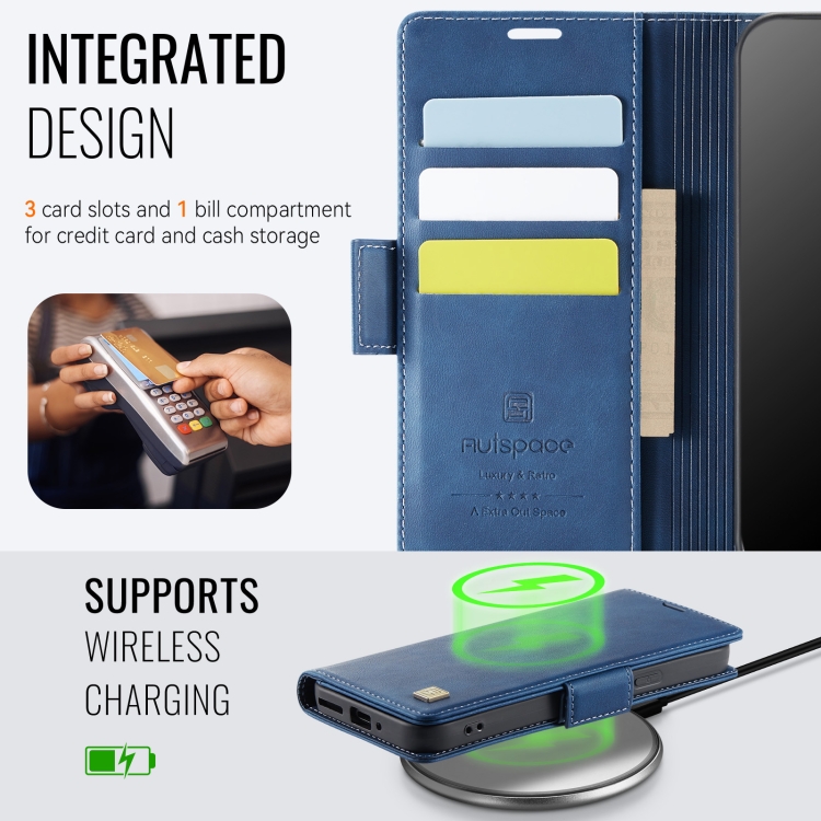 Funda de Cuero para Google Pixel 9 Pro XL Autspace A11 con Hebilla Lateral Magsafe y Rfid (Azul)