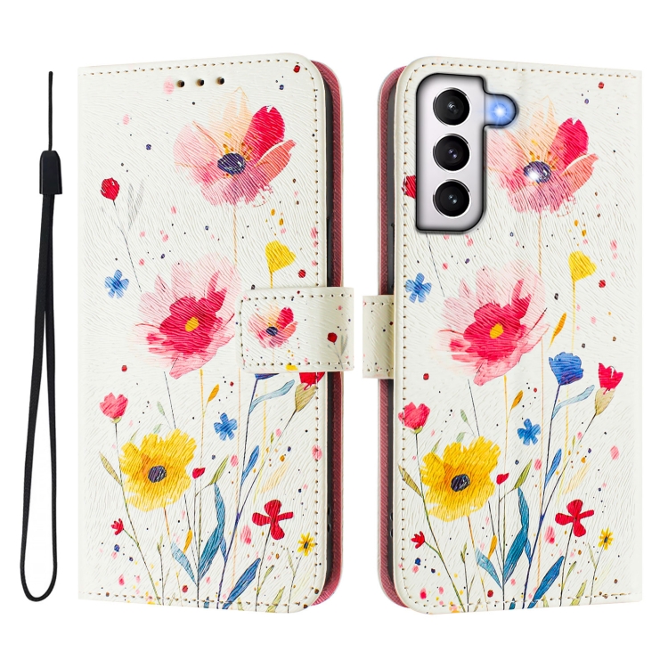 Funda de Cuero para Teléfono Samsung Galaxy S21 5G con Patrón Artístico Flores y Plantas (Color)