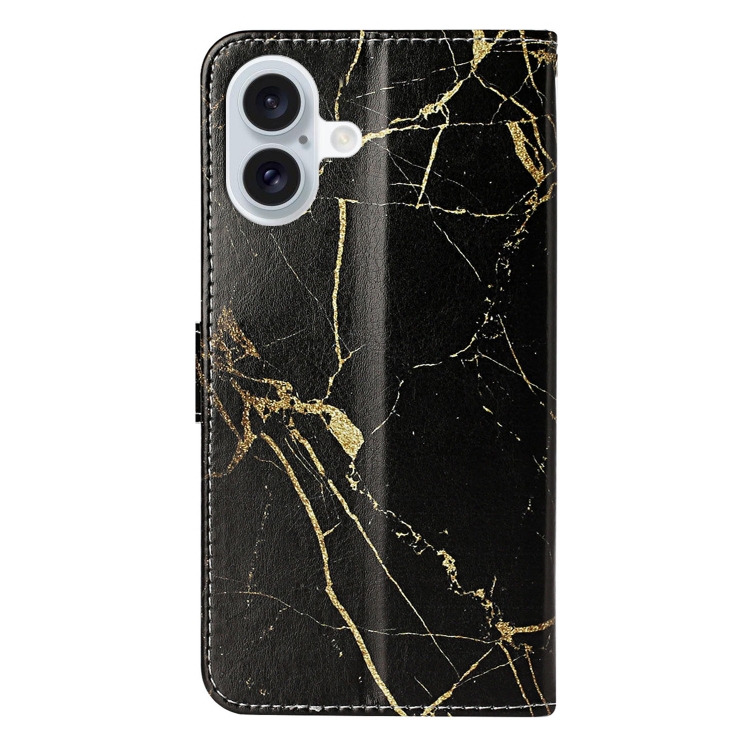 Funda de Cuero para Teléfono iPhone 16 Plus Patrón Mármol Dibujo de Colores (Mármol Negro y Dorado)