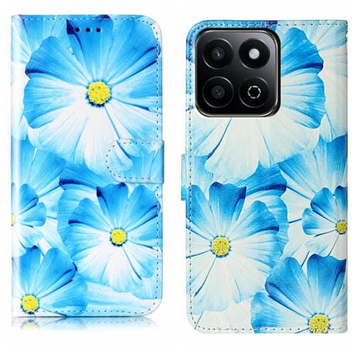 Funda de Cuero para Honor X7C 4G/200 con Patrón Mármol y Dibujo de Colores Inteligentes (Flor Azul)