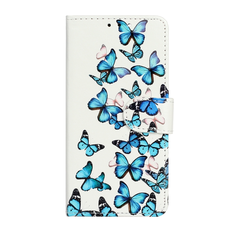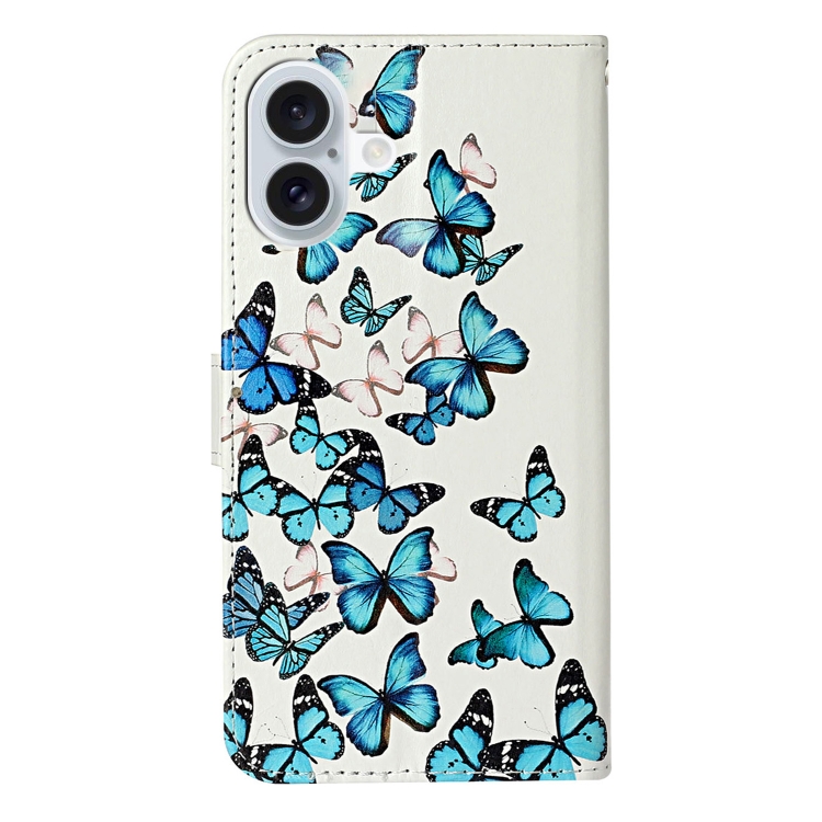 Funda de Cuero para Teléfono iPhone 16 Plus Patrón Mármol Dibujo Colores (Pequeñas Mariposas Azules)
