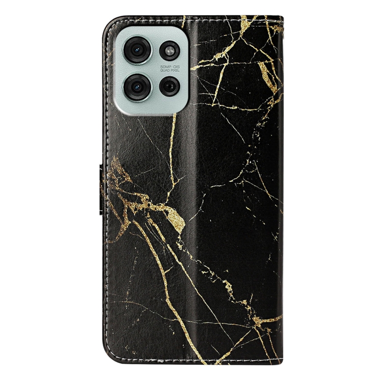 Funda de Cuero para Motorola Moto G75 con Patrón Mármol y Dibujo de Colores (Negro y Dorado)
