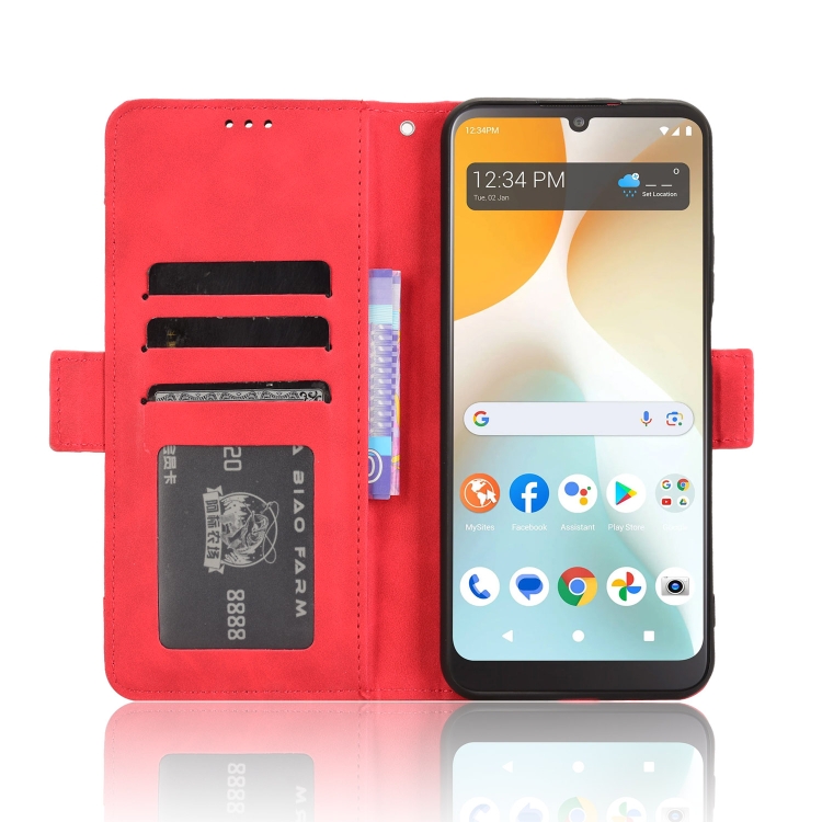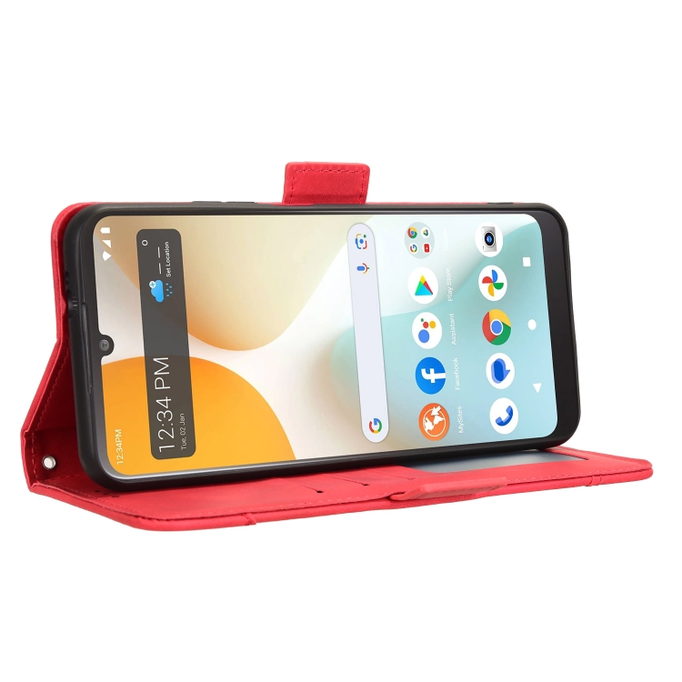 Funda de Cuero para BLU View 5 Pro con Ranuras para Tarjetas y Textura de Piel de Becerro (Rojo)