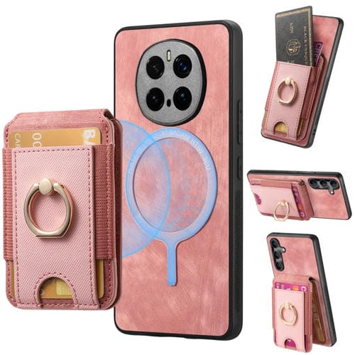 Funda de Cuero para Honor Magic 7 Pro con Soporte Magnético Divisible Retro (Rosa)