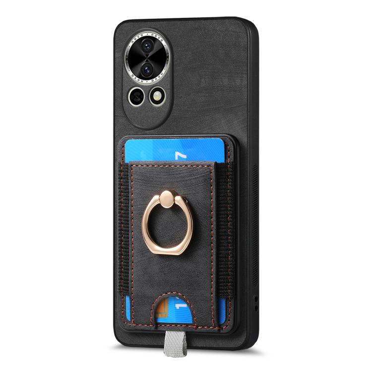 Funda de Cuero para Huawei Nova 13 con Tarjetero Magnético Divisible Retro (Negro)