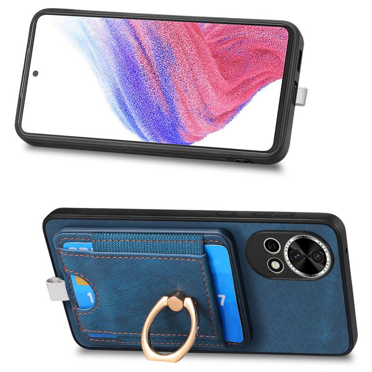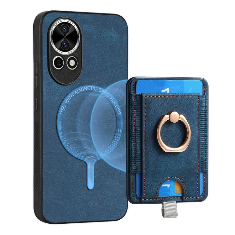 Funda de Cuero para Huawei Nova 13 Pro con Tarjetero Magnético Divisible Retro (Azul)