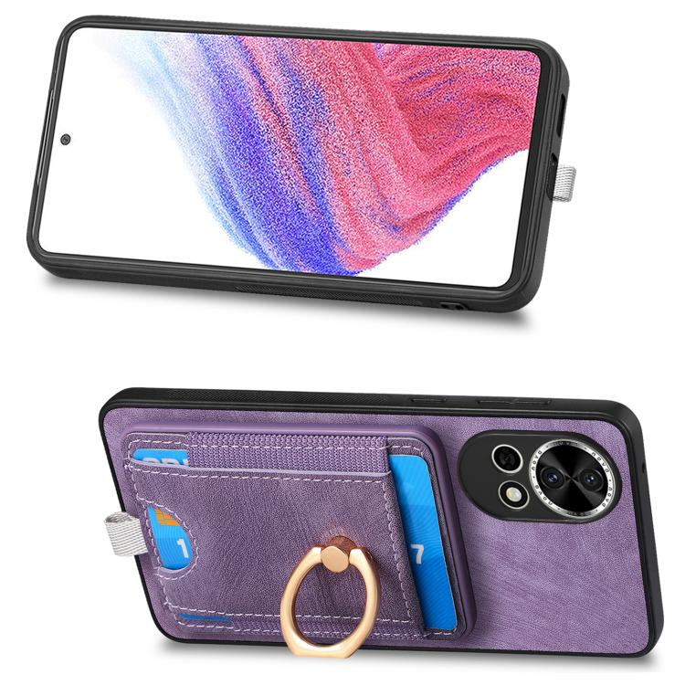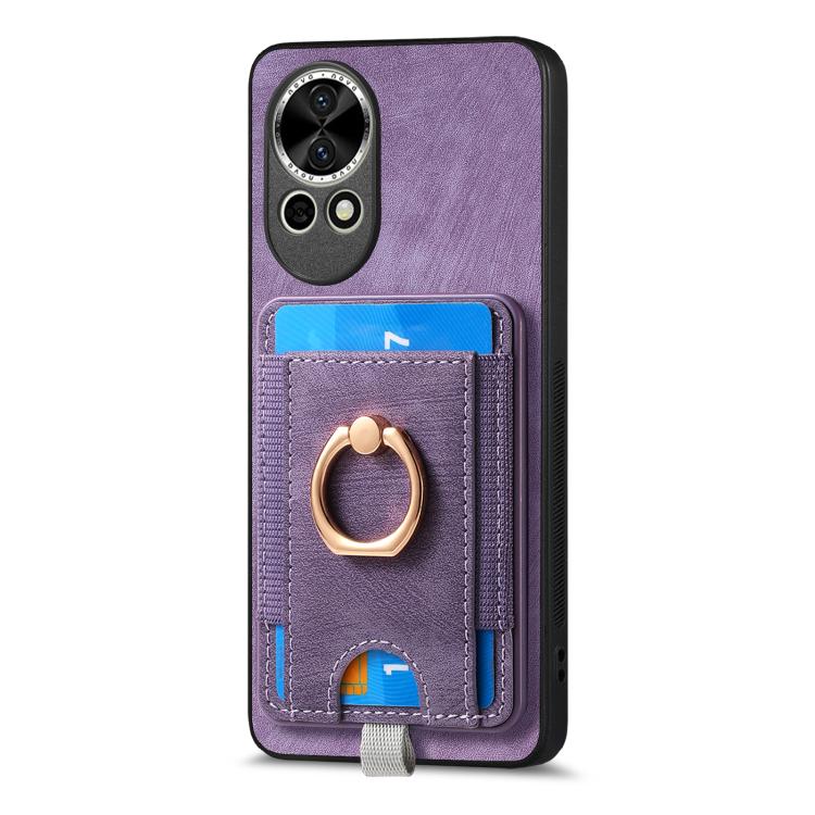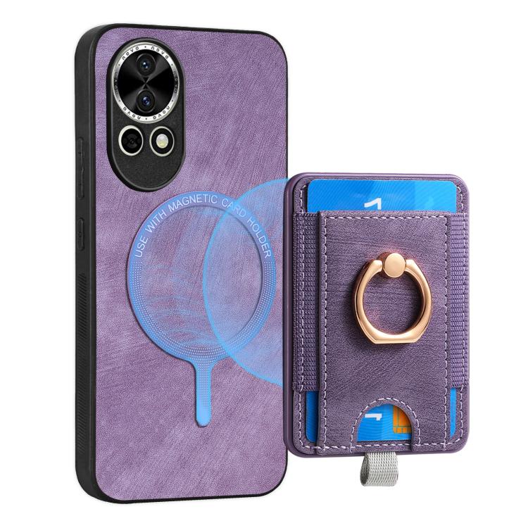 Funda de Cuero para Huawei Nova 13 Pro con Tarjetero Magnético Divisible Retro (Morado)