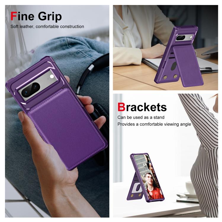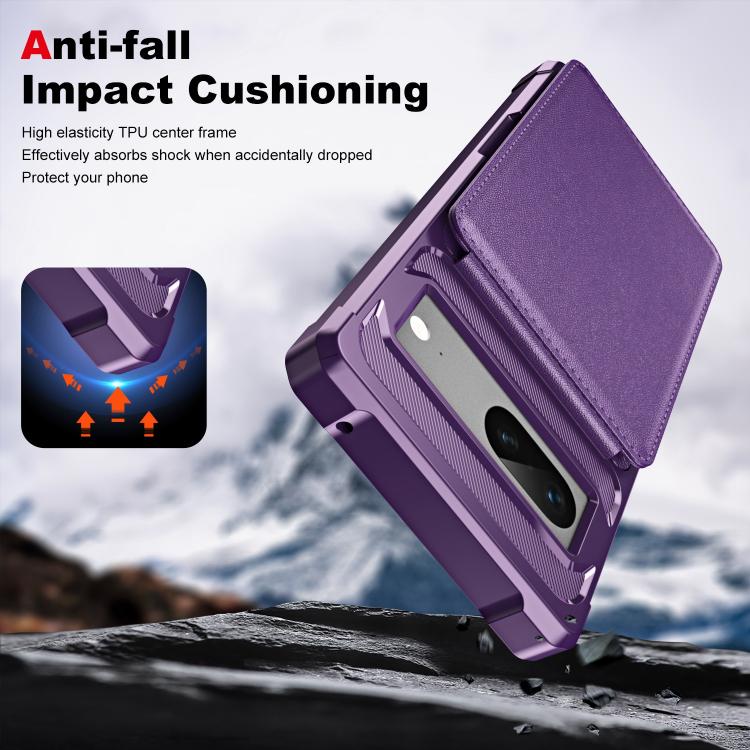 Funda de Cuero con Tarjetero y Tapa Vertical para Google Pixel 7 (Morado)