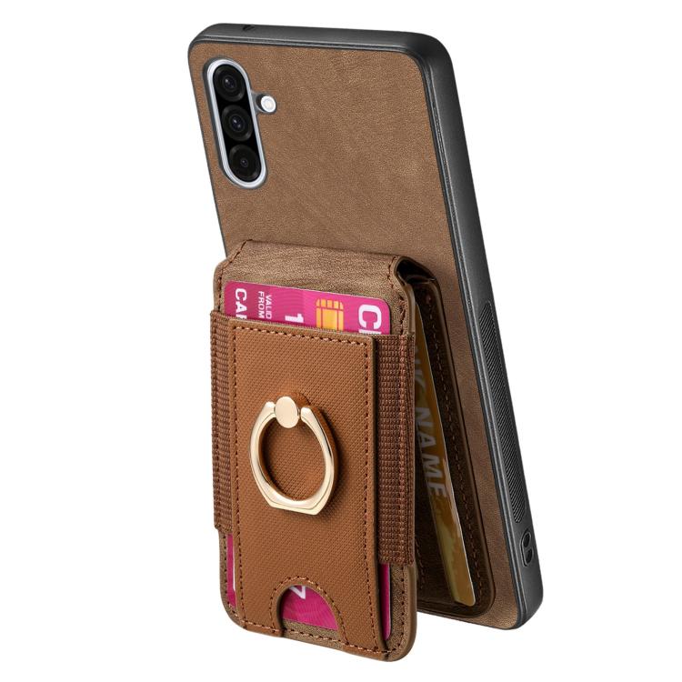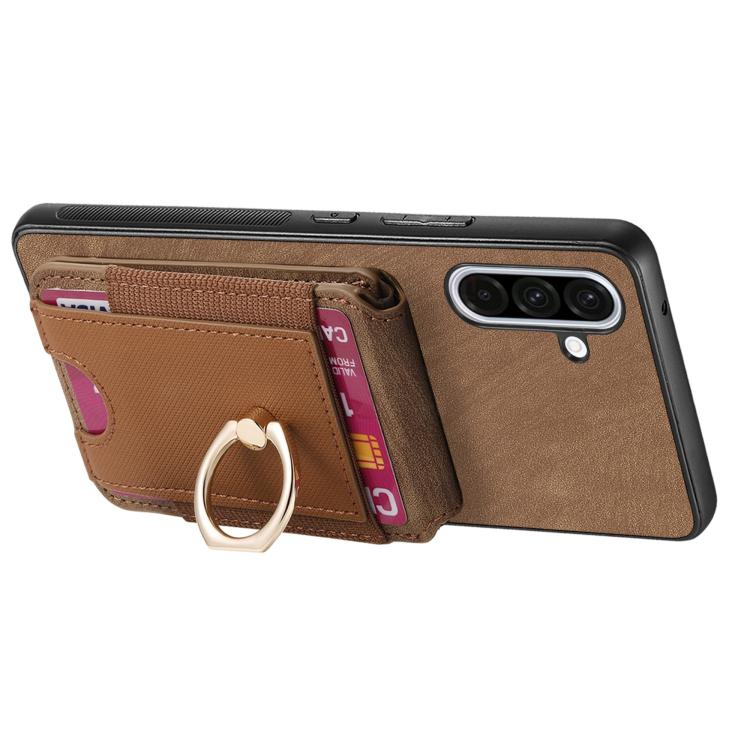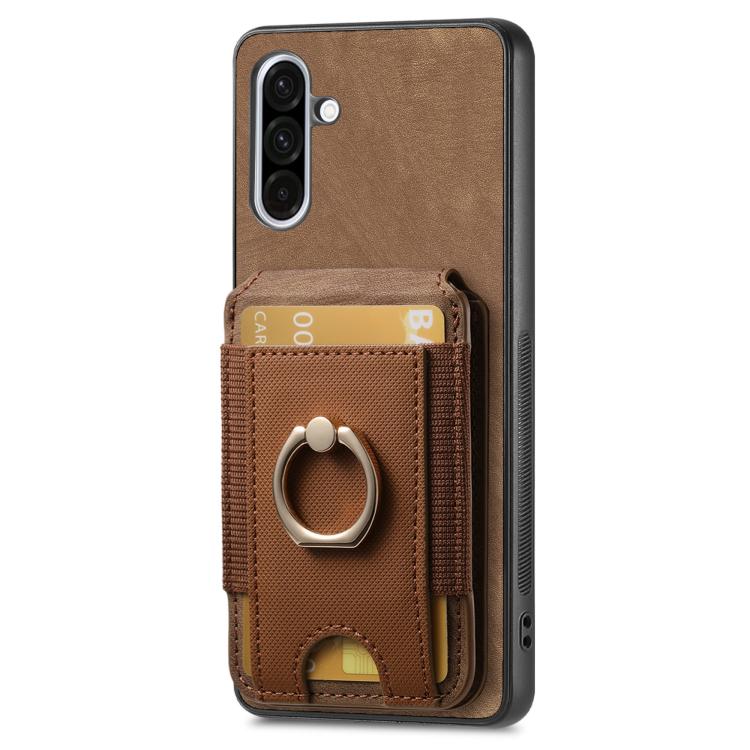 Funda de Cuero para Teléfono Samsung Galaxy A36 con Soporte Magnético Divisible y Tarjetero (Marrón)