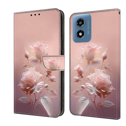 Funda de Cuero pintada a mano para Motorola Moto G Play (2024) (Flores de Cerámica)