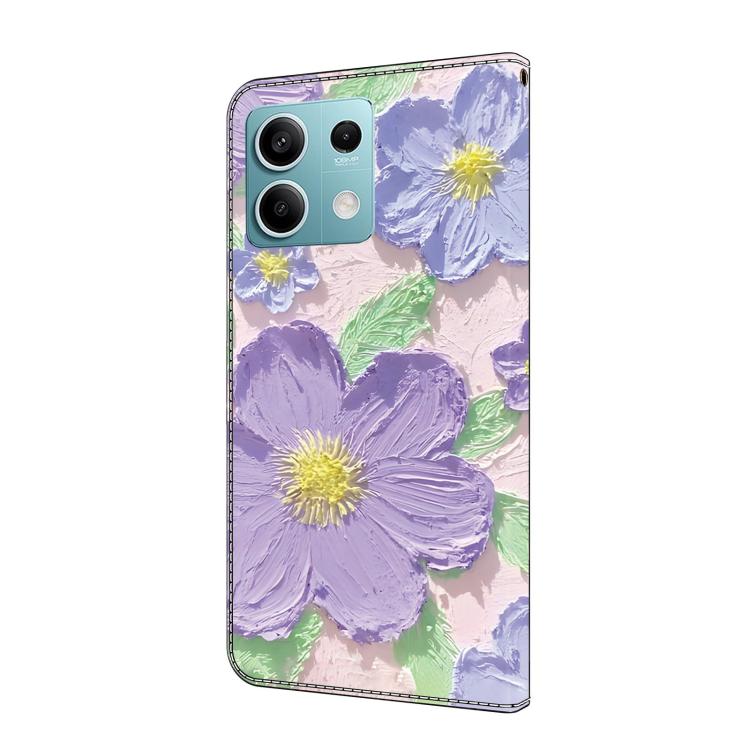 Funda de Cuero Pintada a Mano para Redmi Note 13 5G (Pintura al Óleo de Flores Moradas)
