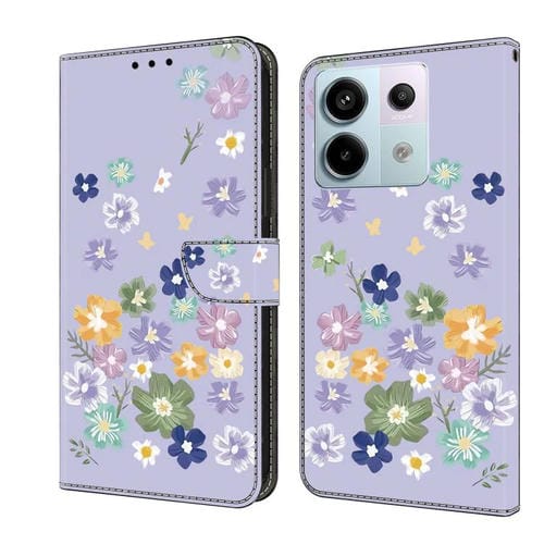 Funda de Cuero Pintada a Mano para Redmi Note 13 Pro 5G (Floral Morado)