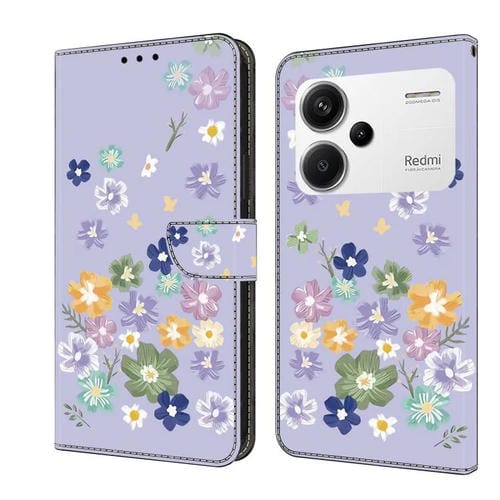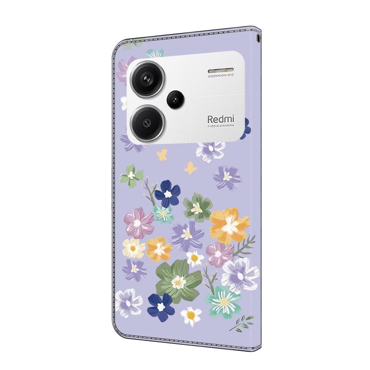 Funda de Cuero Pintada a Mano para Redmi Note 13 Pro+ (Floral Morado)
