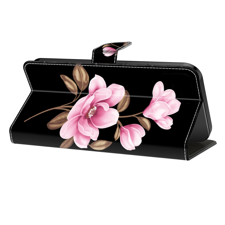Funda de Cuero para Samsung Galaxy A32 5G Pintada a Mano (Flores Negras)