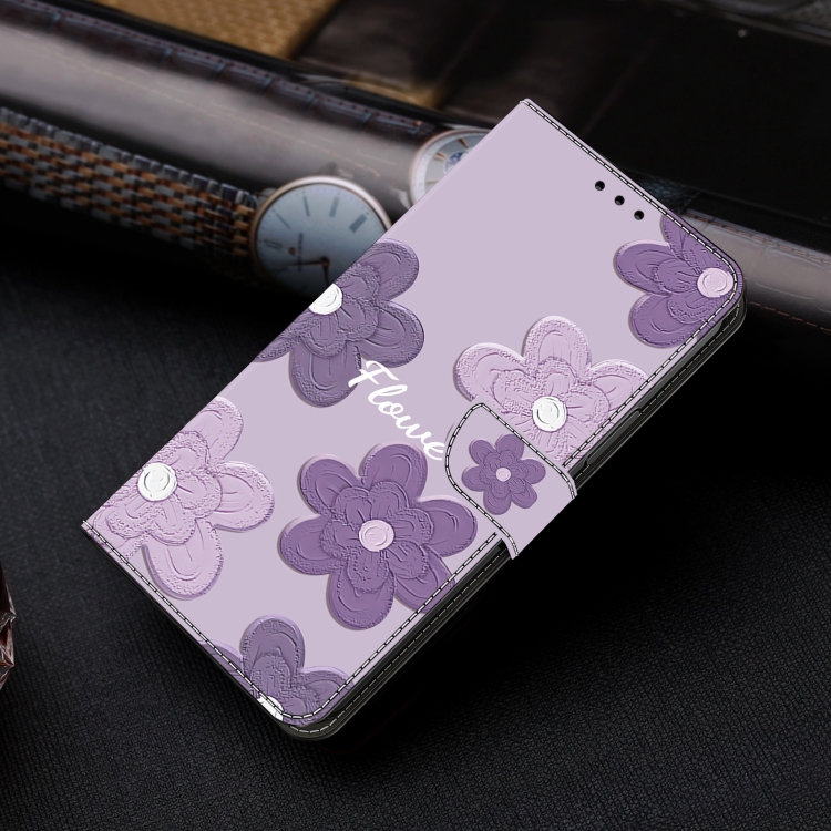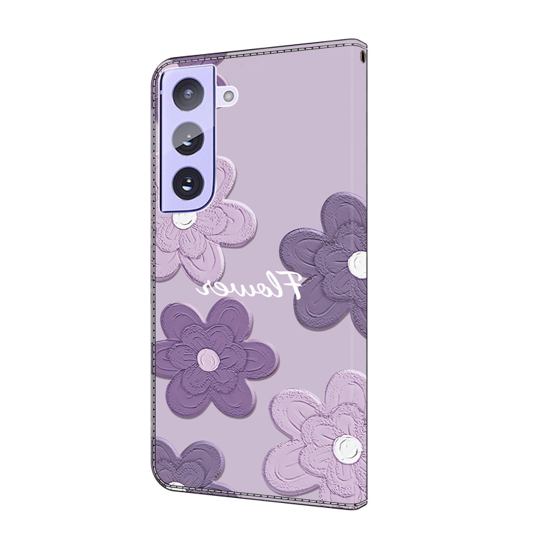 Funda de Cuero Samsung Galaxy S21 5G Pintada a Mano Flores (Morado Oscuro)