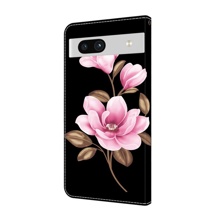 Funda de Cuero Pintada a Mano para Google Pixel 7 (Flores Negras)