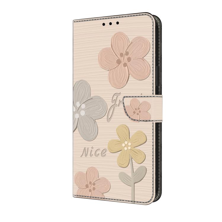 Funda de Cuero Pintada a Mano para Google Pixel 7A con Diseño de Flores (Beige)