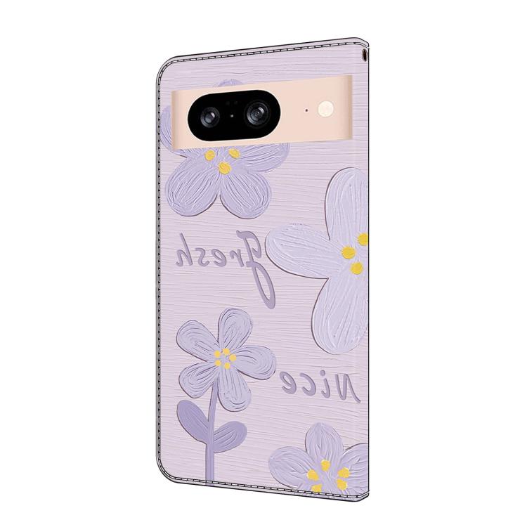 Funda de Cuero Pintada a Mano para Teléfono Google Pixel 8 (Flores Morado Oscuro)
