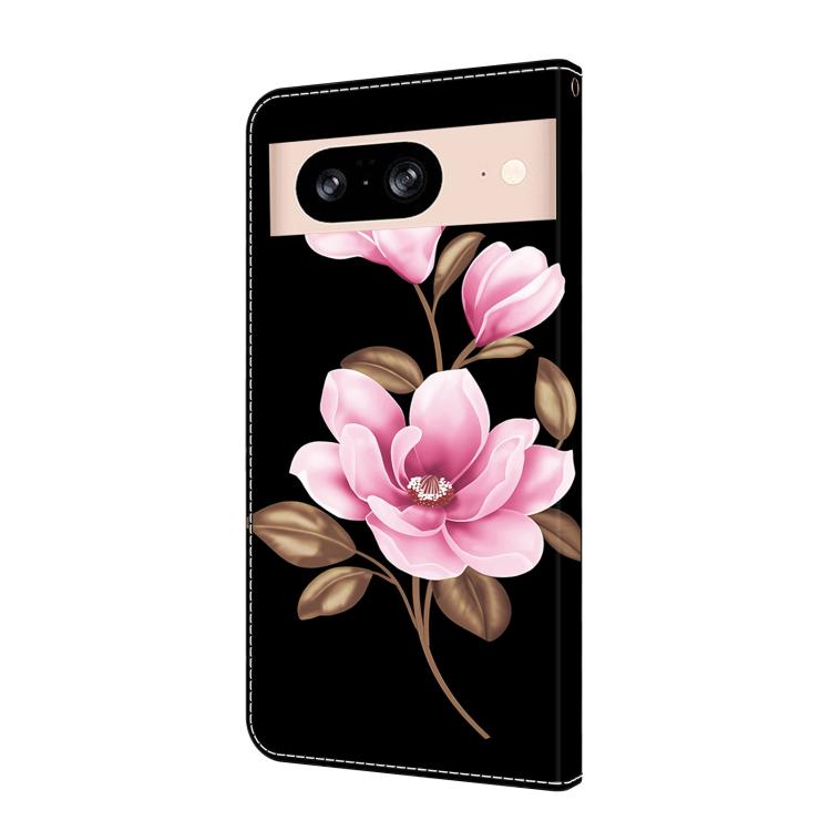 Funda de Cuero Pintada a Mano para Google Pixel 8 con Diseño de Flores Negras