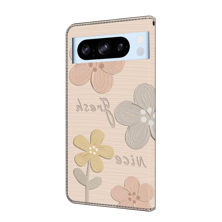 Funda de Cuero Pintada a Mano para Google Pixel 8 Pro (Flores Beige)