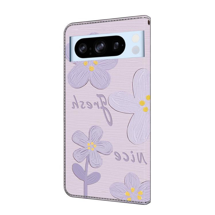 Funda de Cuero Pintada a Mano para Google Pixel 8 Pro (Flores Morado Oscuro)