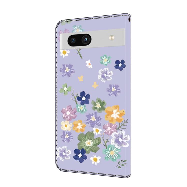 Funda de Cuero Pintada a Mano para Google Pixel 8A (Floral Morado)