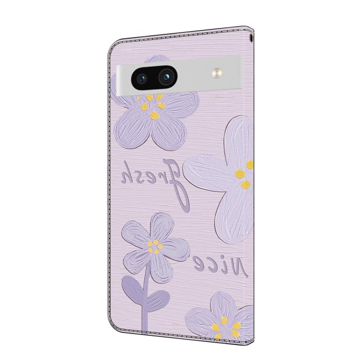 Funda de Cuero Pintada a Mano para Google Pixel 8A con Flores (Morado Oscuro)