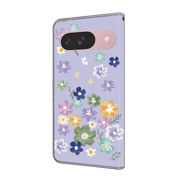 Funda de Cuero Pintada a Mano para Google Pixel 9 y 9 Pro (Floral Morado)