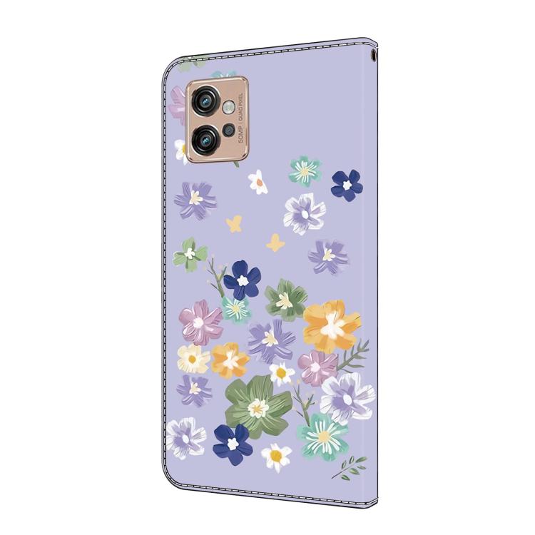 Funda de Cuero Pintada a Mano Motorola Moto G32 Protección Floral (Morado)