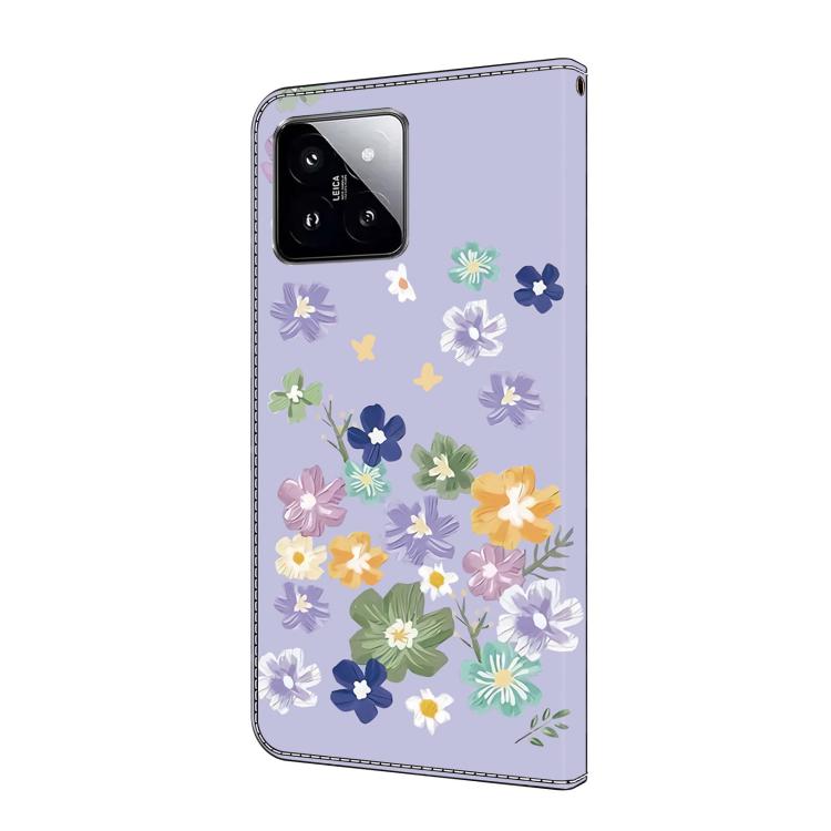 Funda De Cuero Pintada A Mano Para Teléfono Xiaomi 14 (Floral Morado)