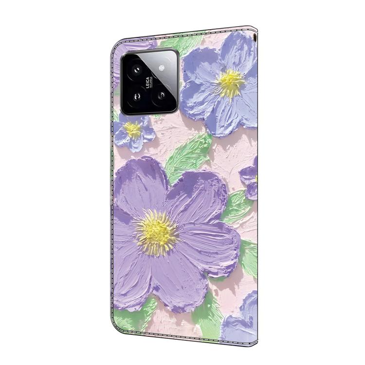 Funda De Cuero Pintada Al Óleo Para Teléfono Xiaomi 14 (Flores Moradas)