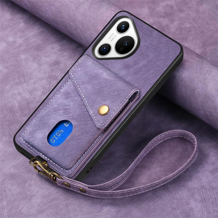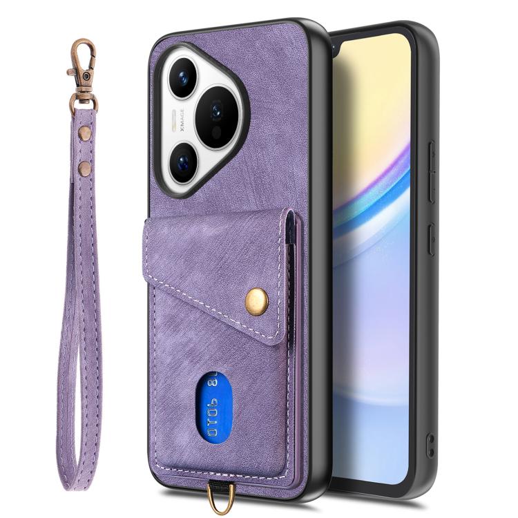 Funda de cuero plegable con correa para Huawei Pura 70 Pro / 70 Pro+ (morado)
