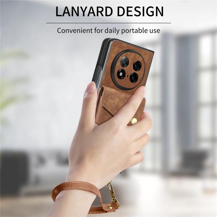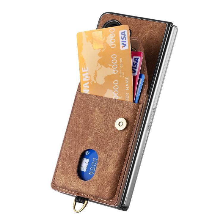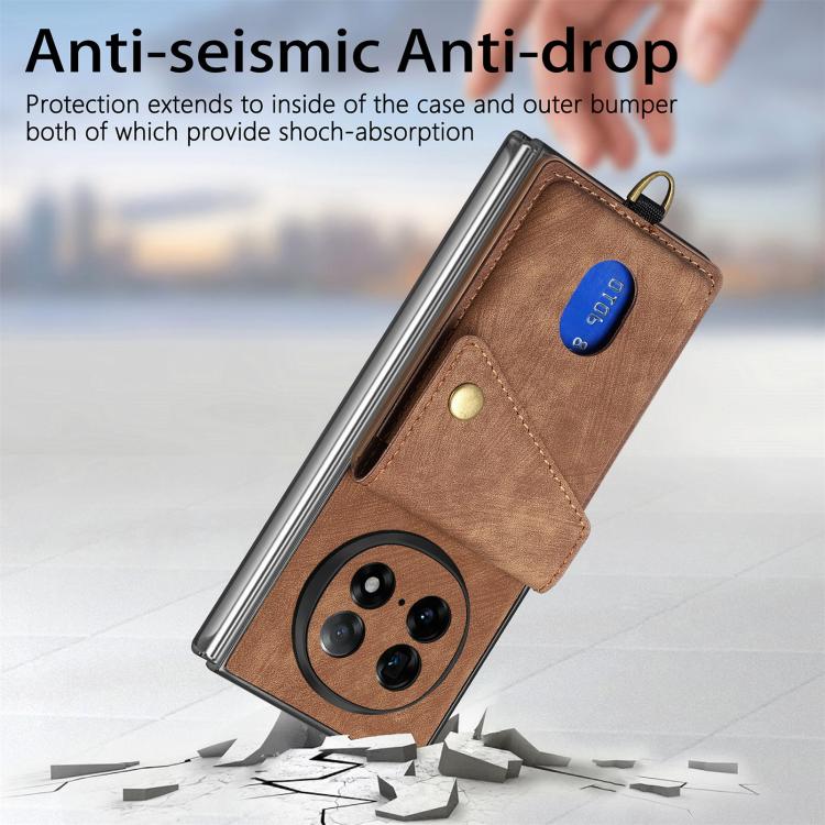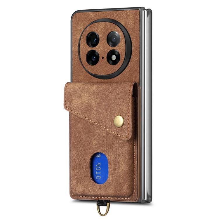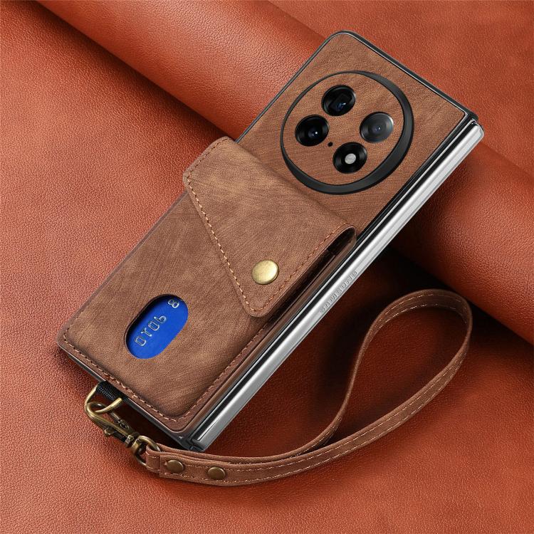 Funda de Cuero Plegable con Correa para Oppo Find N5, Estilo Retro, con TaRJetero (Marrón)