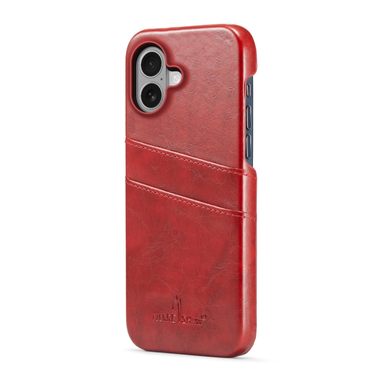 Funda de Cuero Pu Fierre Shann para iPhone 16 con Ranuras para Tarjetas (Rojo)