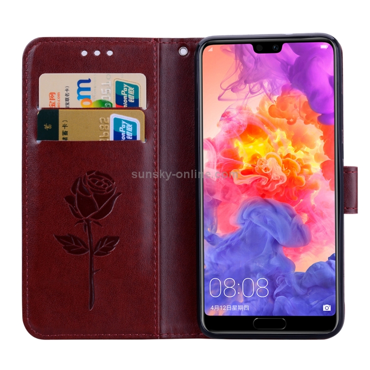 Funda de Cuero Pu con Tapa Horizontal En Relieve para Huawei P20 con Soporte y Ranuras (Marrón)