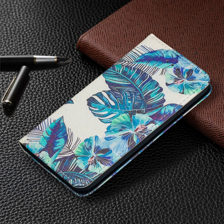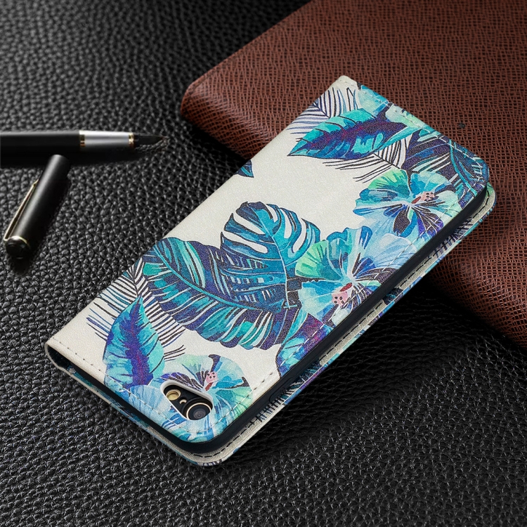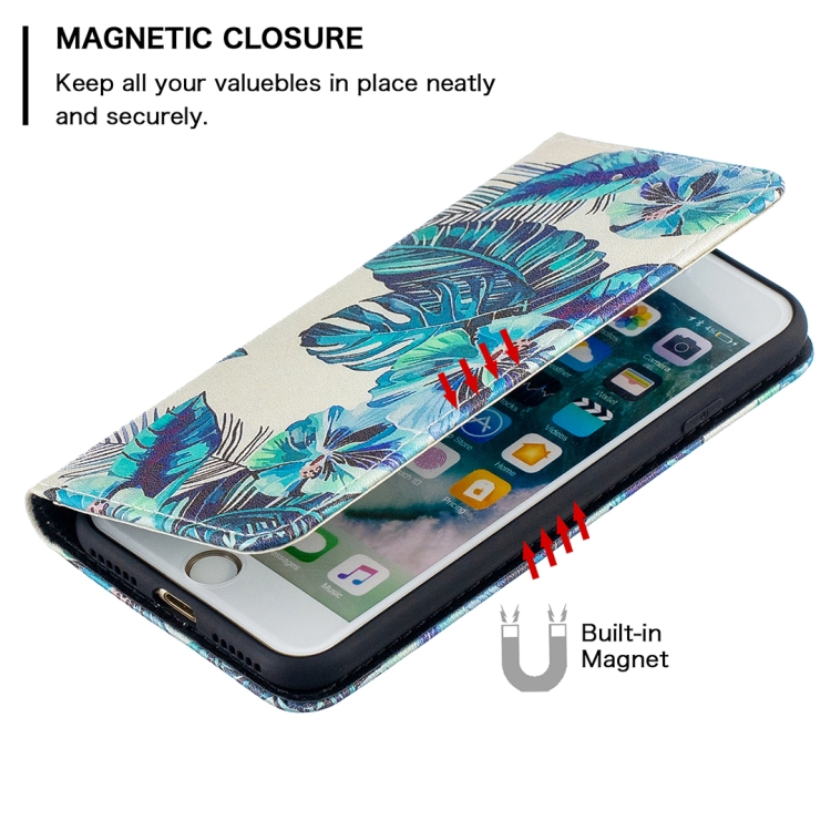 Funda de Cuero Pu para iPhone 8 y 7 con Tapa Horizontal Magnética, Soporte, Ranuras para Tarjetas y Billetera (Hojas Azules)