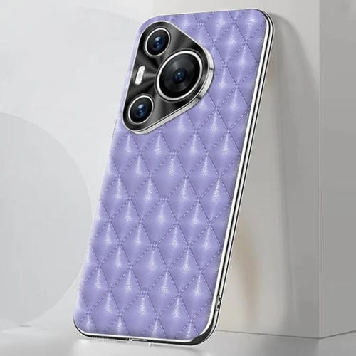 - 1x Funda de Cuero PU con Textura Rómbica y Borde Plateado para Huawei Pura 70 Pro/70 Pro+ (Morado)