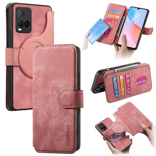 Funda de Cuero Retro Antirrobo con Rfid y Magsafe para Vivo Y21S/Y32/Y21T/Y3T (Rosa)