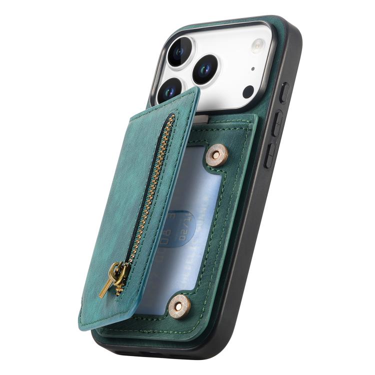 Funda de cuero retro con cremallera para iPhone 17 Pro (verde)